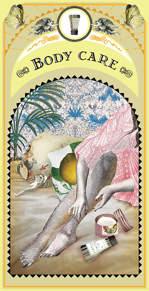 A collage-style visual created for the Beauty Apothecary floor at Isetan Shinjuku. The illustration was designed to blend gently with the product display area, evoking calm, elegance, and everyday beauty.